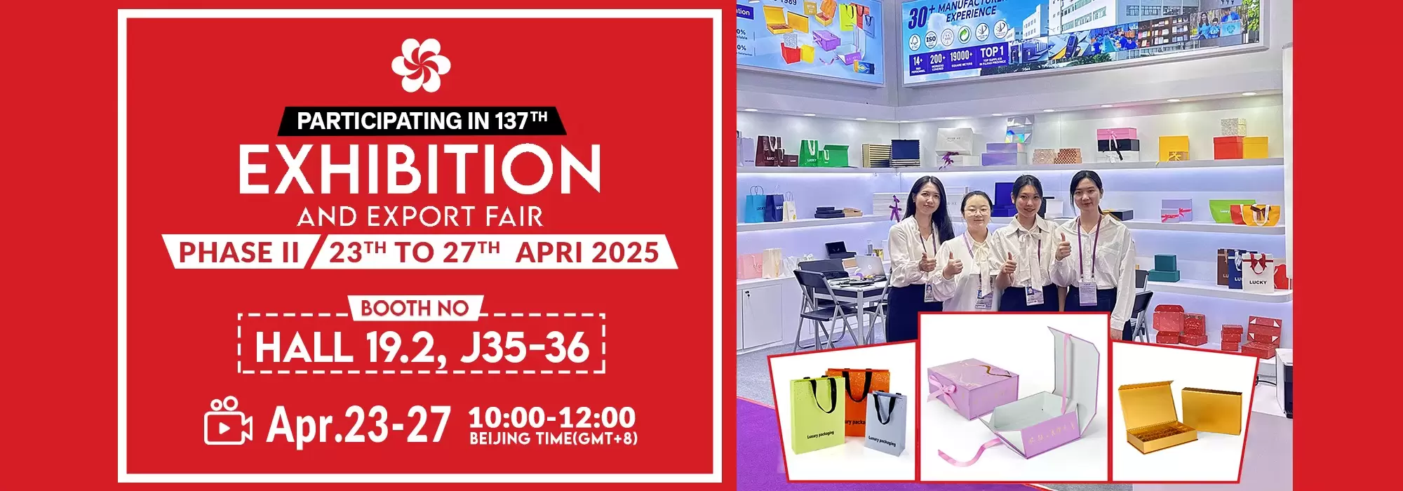 4월 23일부터 27일까지 중국 춘계 캔톤 페어에서 만나요! 저희 부스 번호는 19.2홀, J35-36입니다. 샤먼 헝싱 컬러 인쇄를 선택하시면 고품질 종이 포장재, 친환경 포장 솔루션, 그리고 효율적인 전문 서비스를 만나보실 수 있습니다. 저희와 함께 찬란한 미래를 만들어 보세요! 함께 우수성을 경험하고 찬란한 미래를 만들어 갑시다!