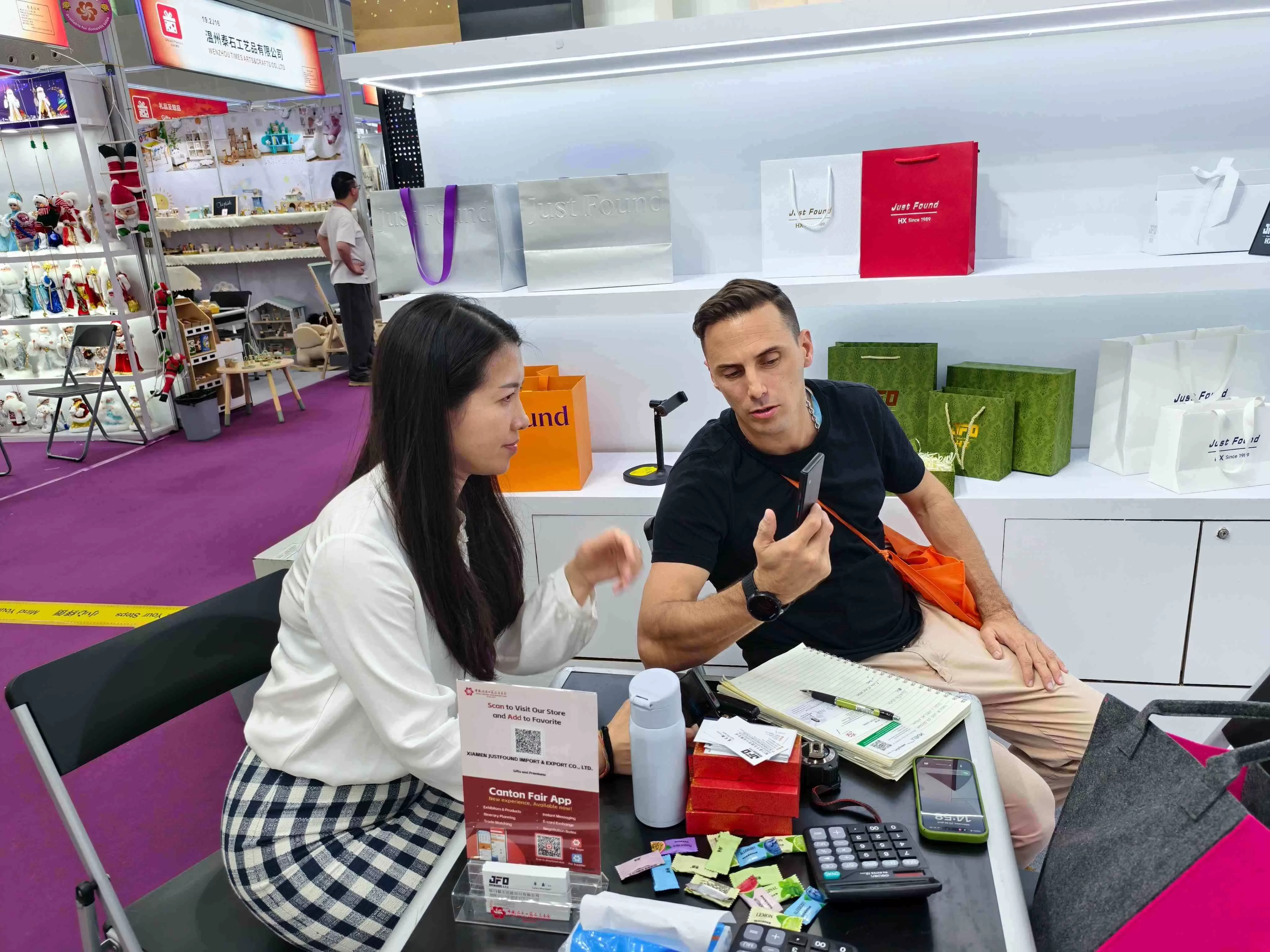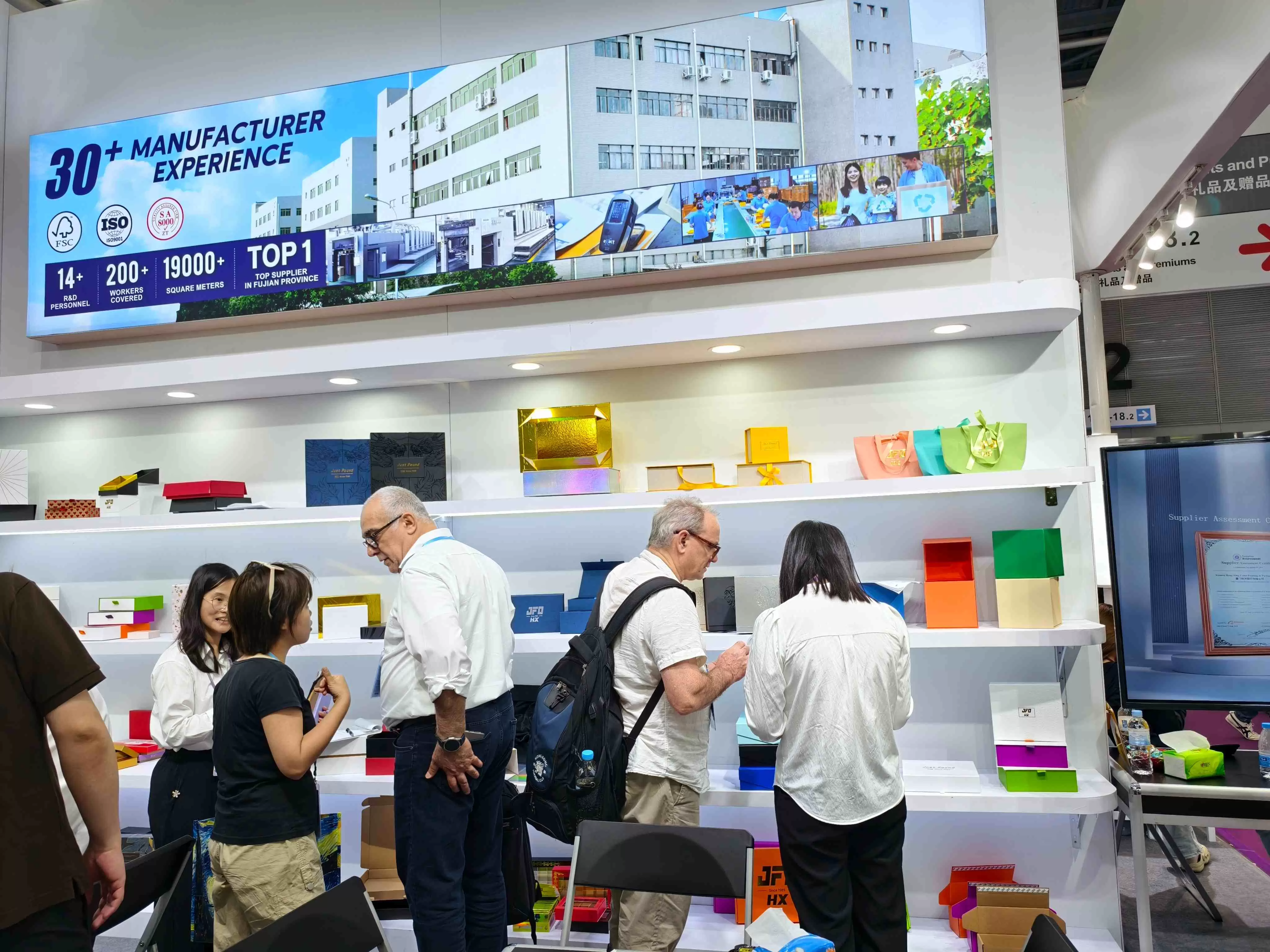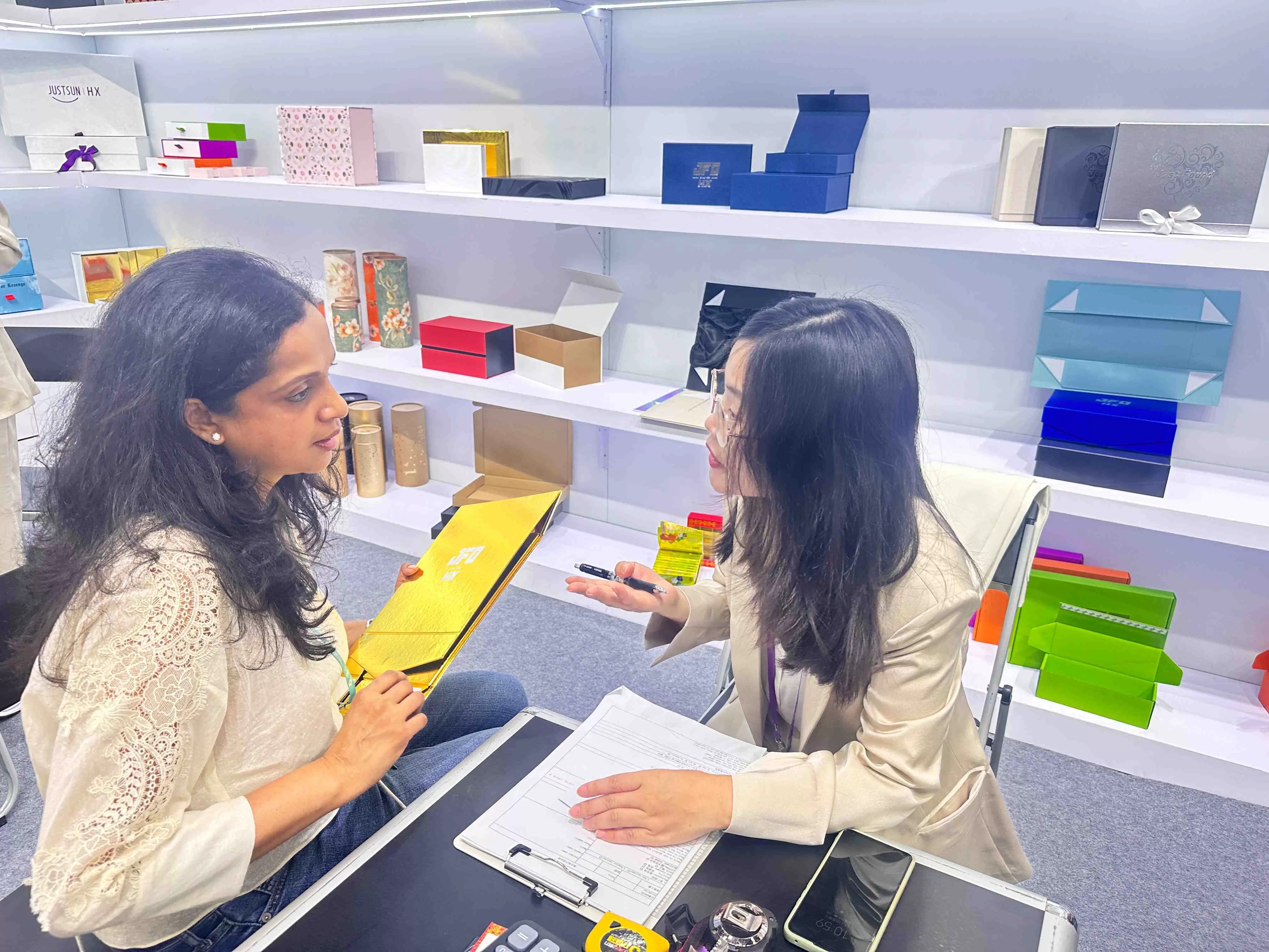 19.2홀 J35-36 부스에 전시된 샤먼 헝싱 컬러 프린팅(Xiamen Hengxing Color Printing Co., Ltd.) 부스는 많은 해외 바이어들의 방문과 상담을 받았습니다. 유럽, 미주, 동남아시아 등 여러 지역의 바이어들은 회사가 전시한 친환경 종이봉투와 창의적인 종이상자 샘플에 큰 관심을 보이며, 현장에서 여러 건의 협력 의향을 전달했습니다.