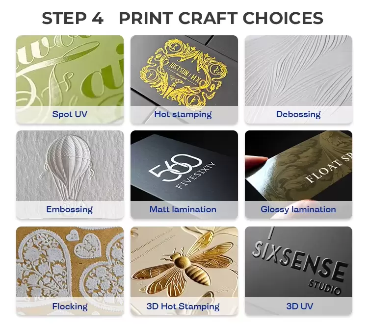 표면 마감: 무광/광택 라미네이션, 스탬핑, 스팟 UV, 디보싱, 엠보싱 등.