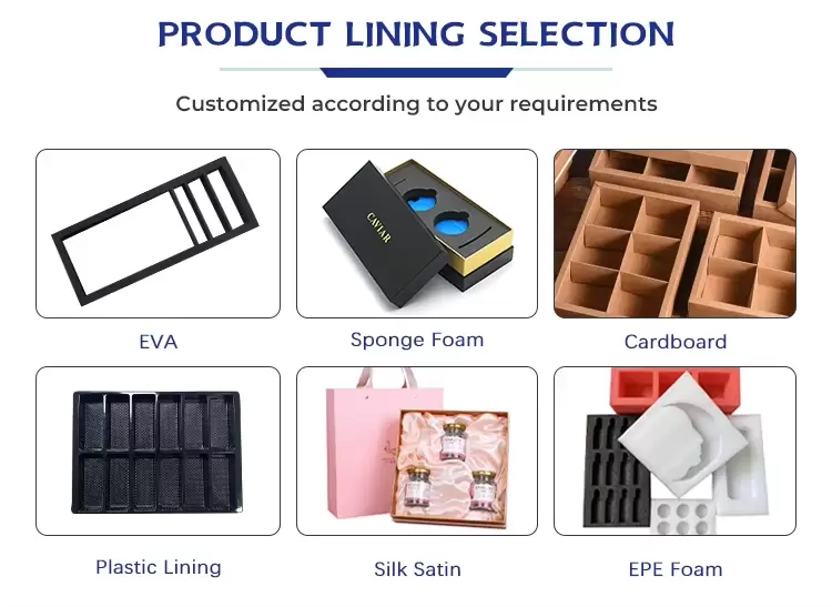 부속품: 자석 잠금 뚜껑, 리본 포함, 맞춤형 안감.