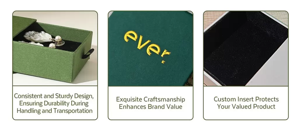 서랍 여닫기: 서랍의 슬라이딩이 매끄러워야 합니다. 서랍과 상자 사이의 간격을 2~3mm로 적절히 설계하면 과도한 간격으로 인한 흔들림 없이 부드럽게 슬라이딩할 수 있습니다. 매끄러운 종이 재질을 사용하거나 얇은 플라스틱 스트립과 같은 보조 슬라이드를 추가하여 열고 닫는 경험을 최적화하세요.